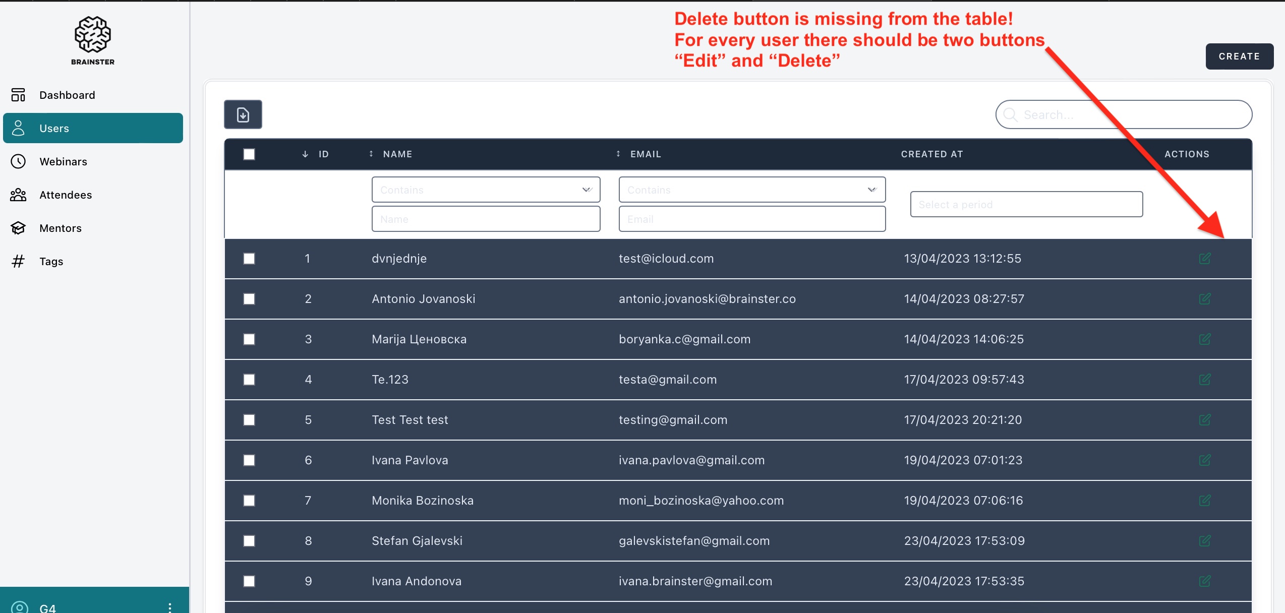 1.Navigate to https://qainterrapt.brainster.xyz/users