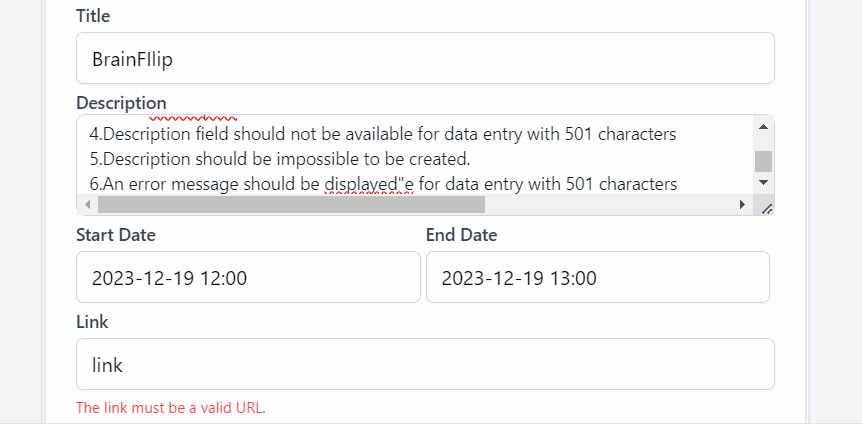 - Subject changed from The user can type more than 500 characters in the description field. to The user can type more than 502 characters in the description field.