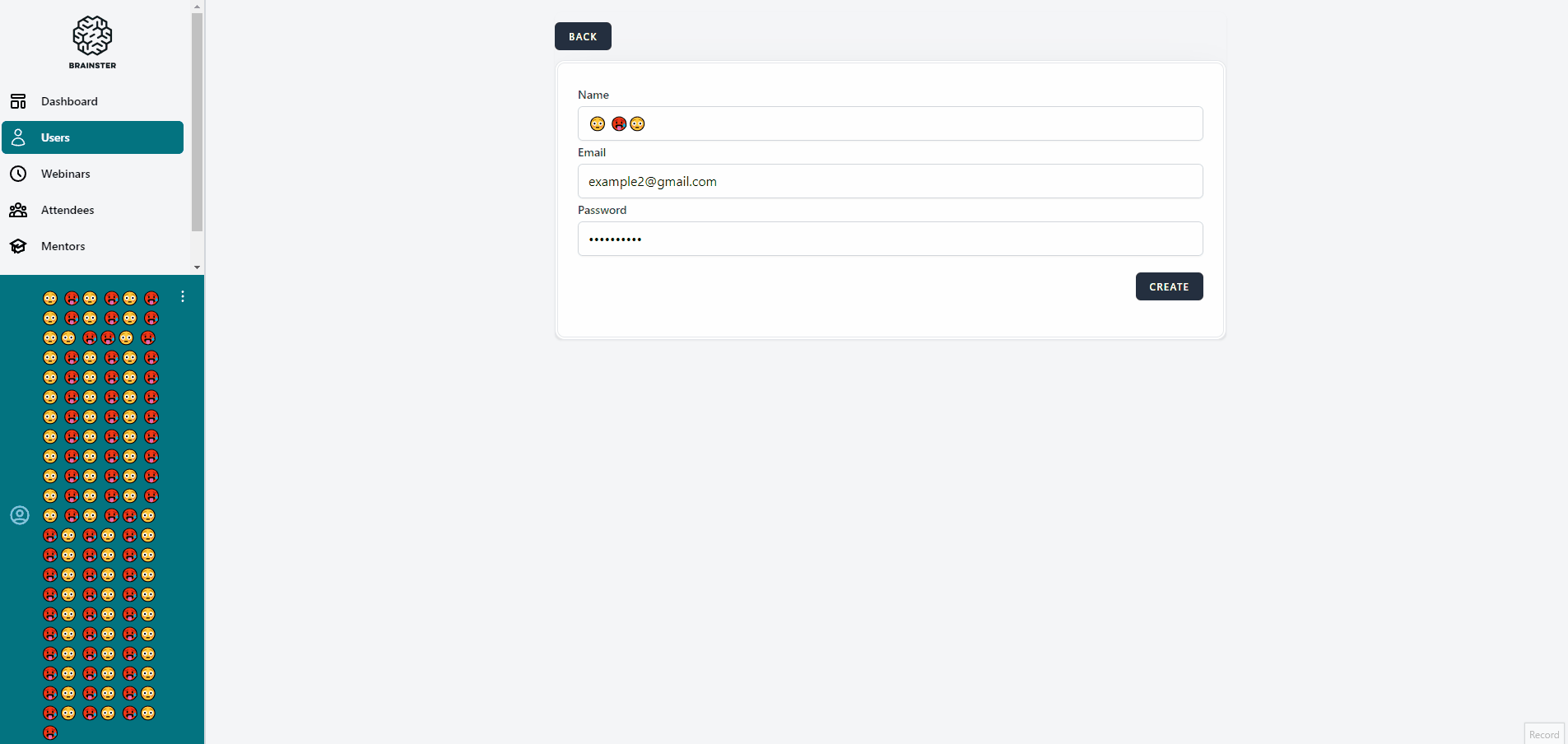 The user should not be able to create an account where the Name field is filled in with emojis.