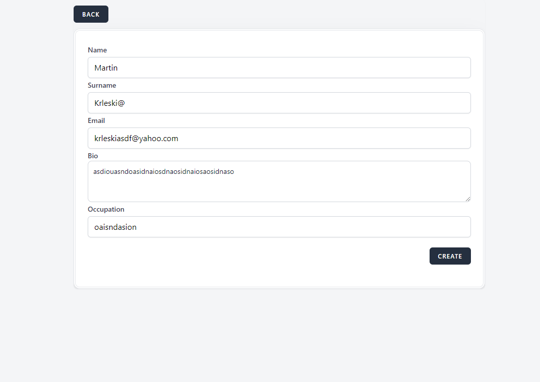 3.Fill in the "Surname" field with more then 2 characters and special character @