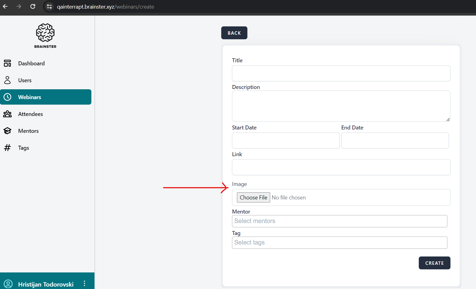 Preconditions: The user must be navigated to https://qainterrapt.brainster.xyz/webinars