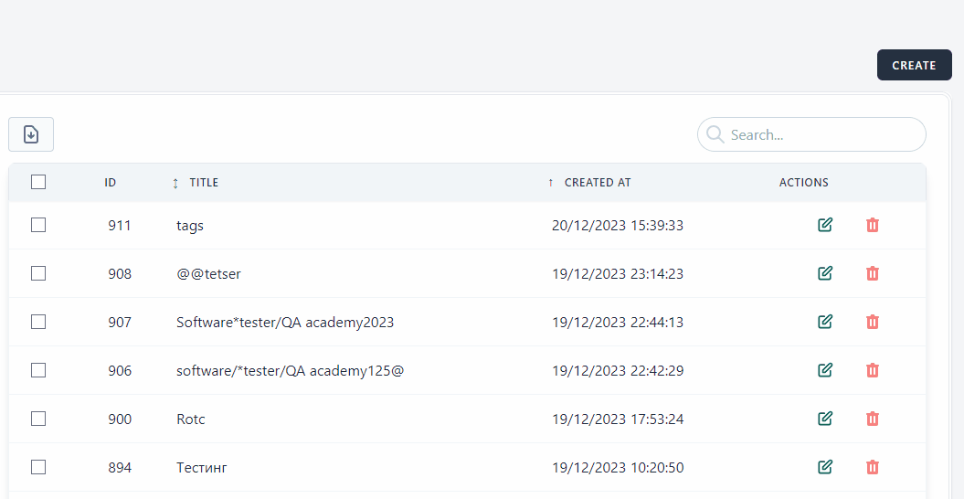 https://qainterrapt.brainster.xyz/tags Windows 10 Pro 22H2 Google Chrome Version 120.0.6099.109 (Official Build) (64-bit)