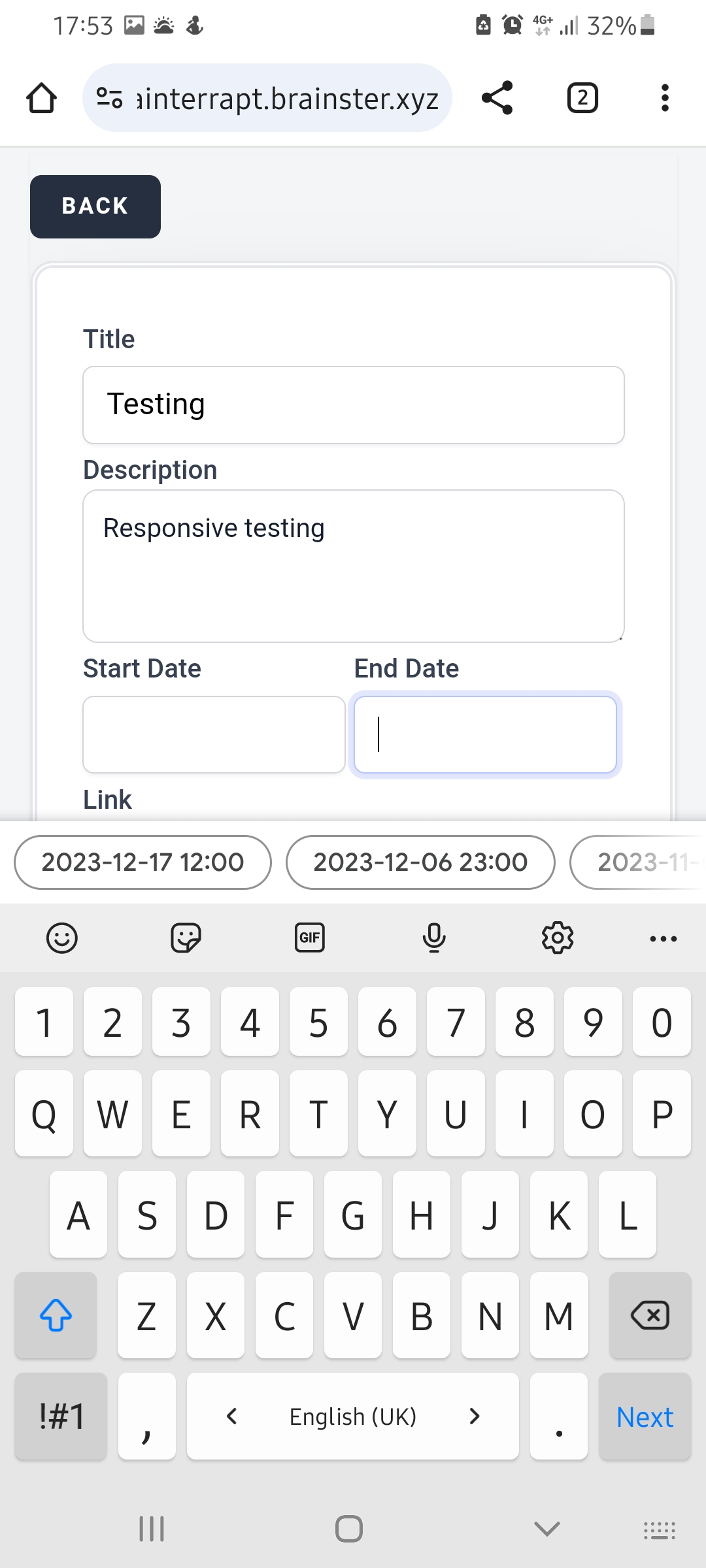 4. Click on the End date and time ( end date.jpeg screenshot)