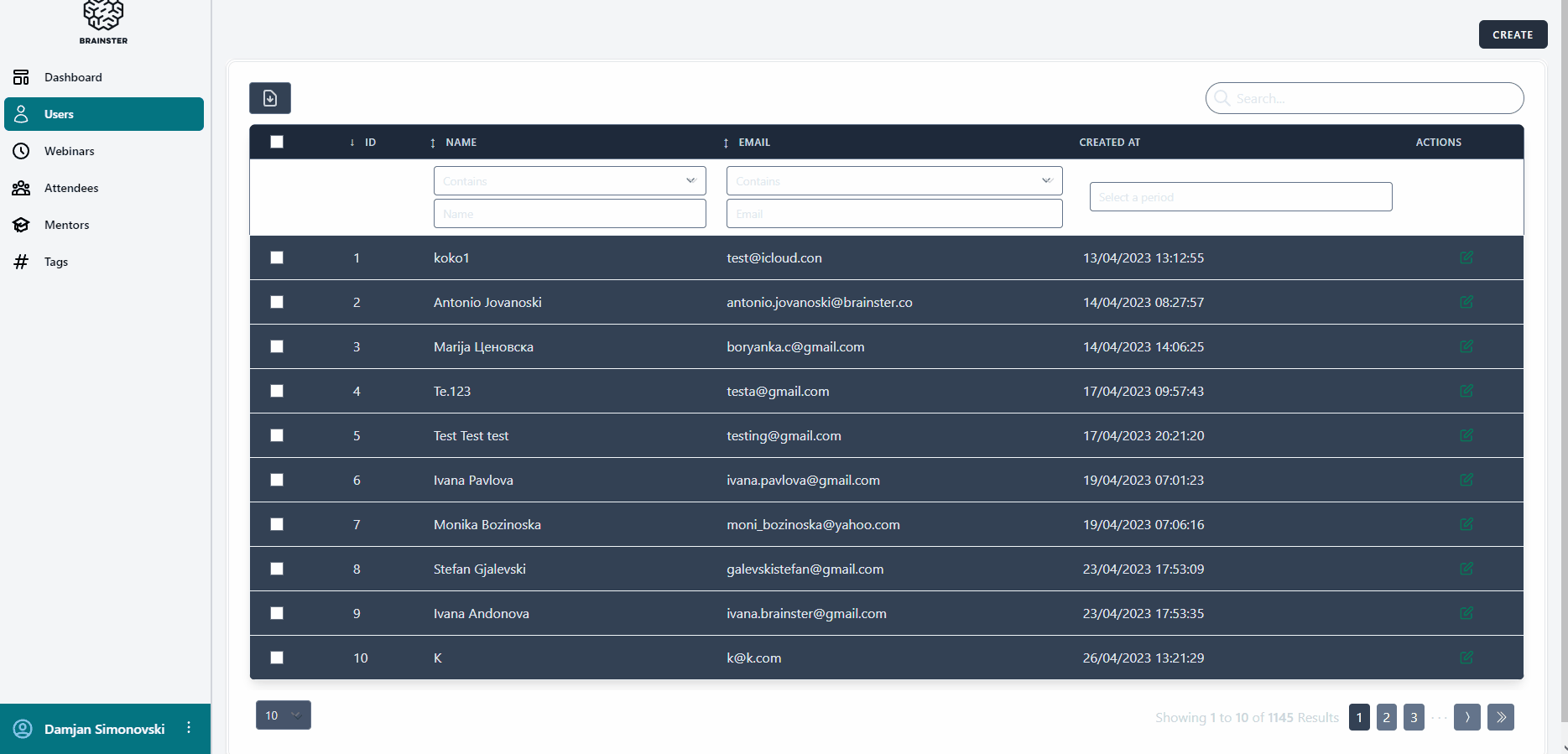 Actual result : The user is able to search for invalid characters in the "Name" search field
