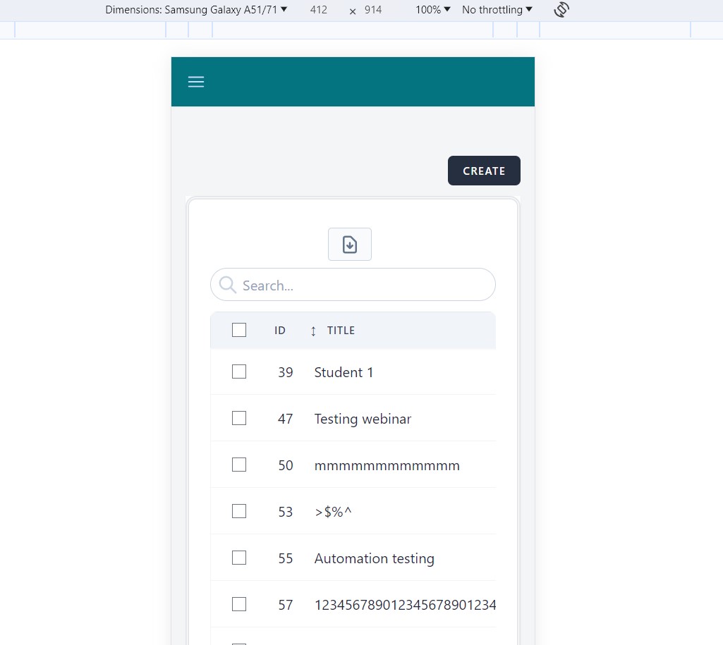 Webinars page is not entirely displayed on the screen