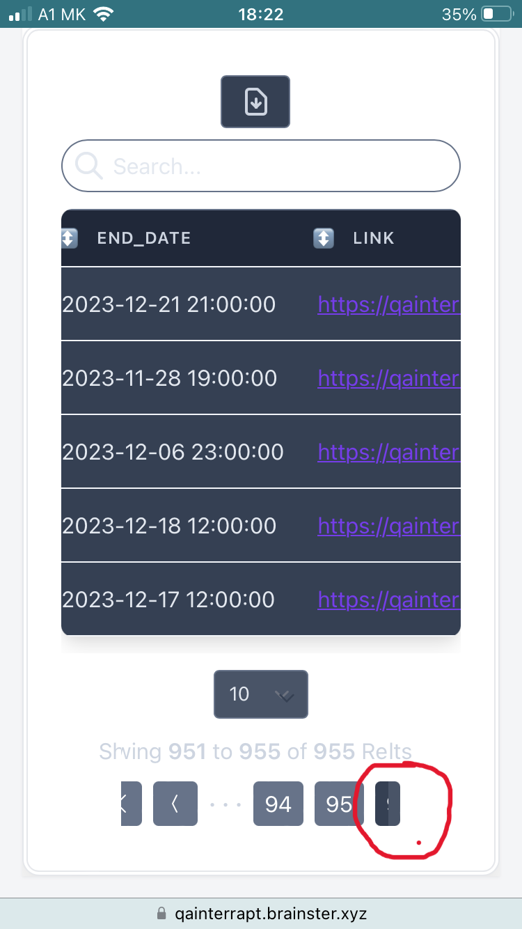 Actual Result: The user is not able to see the number of the last page on Pagination menu.(File attached) .