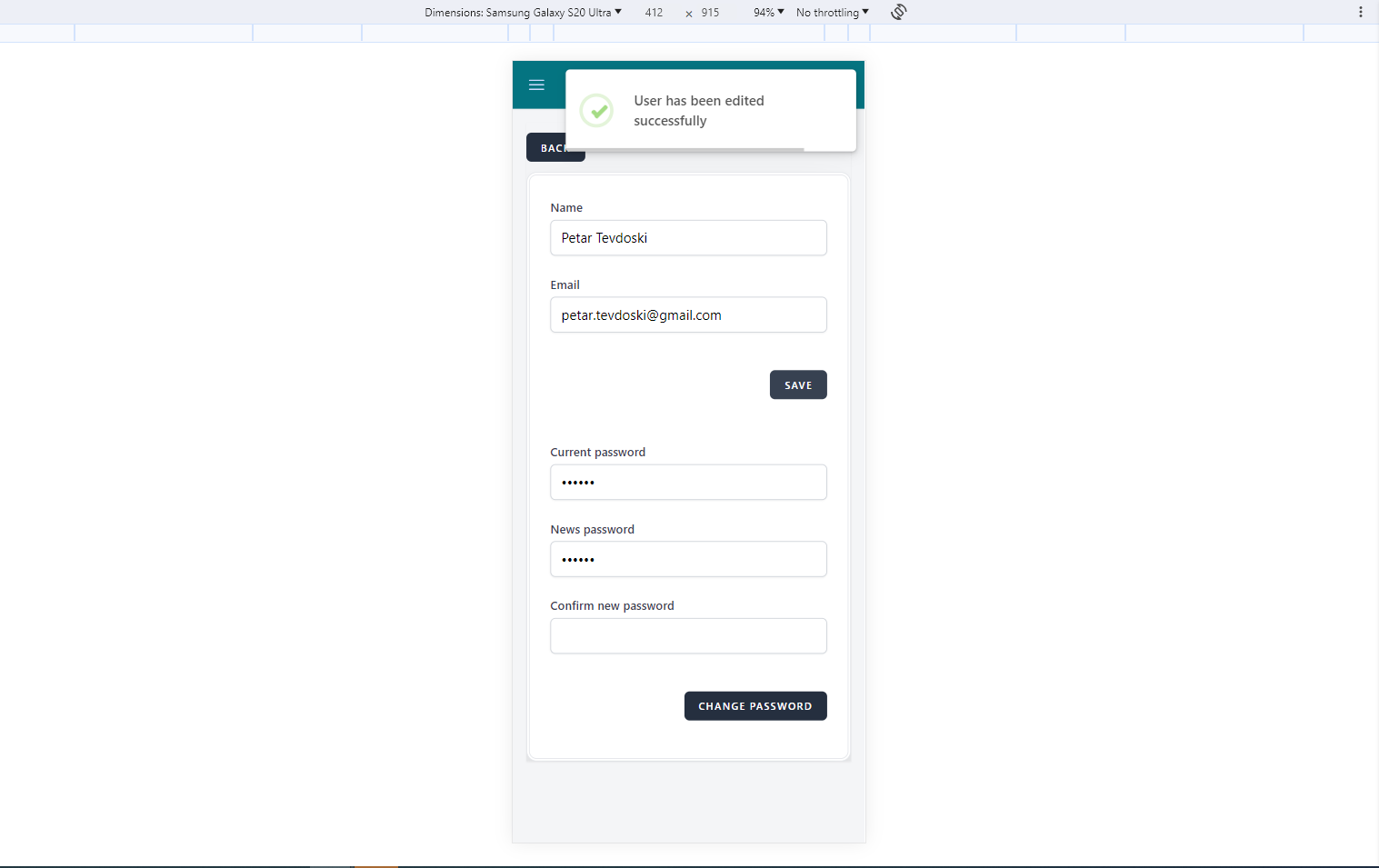 By clicking the Save button, a message appears that the new password has been saved successfully.