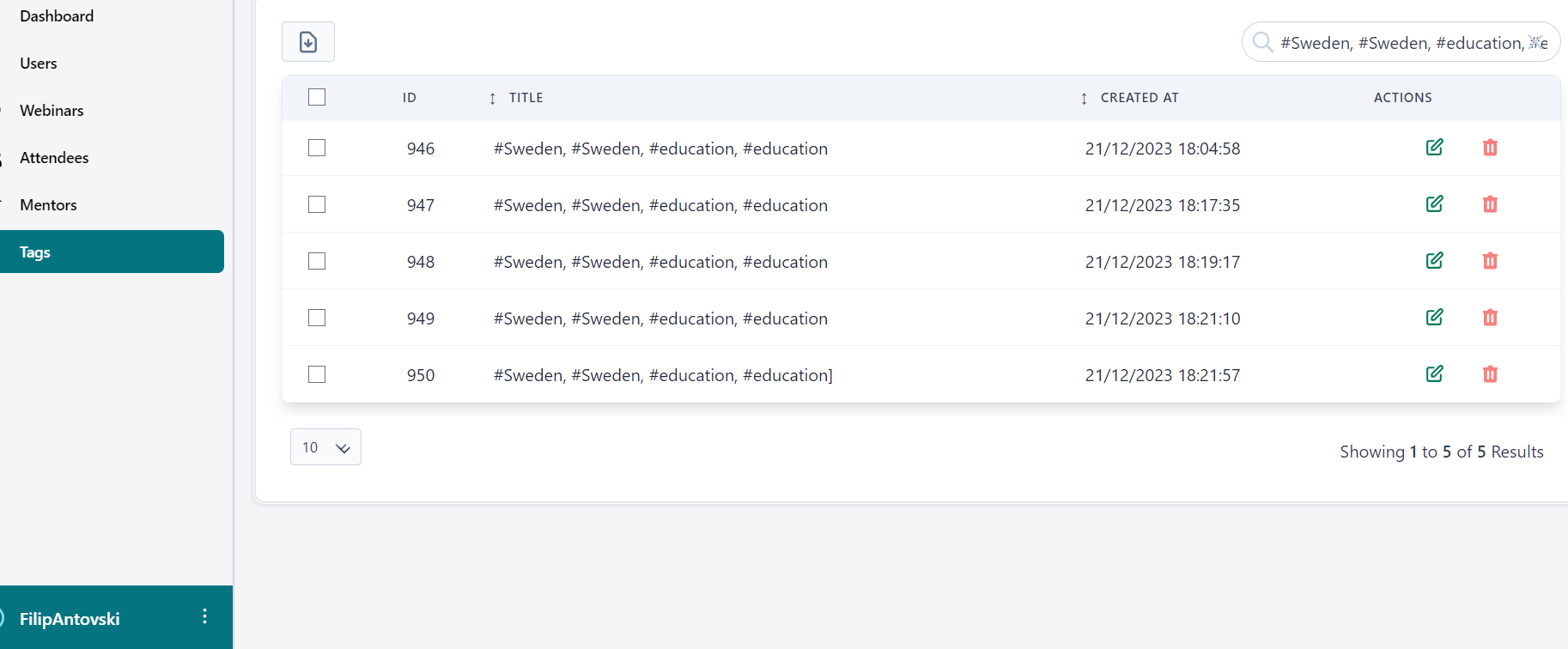 - Subject changed from For duplicate Tag from the list a message should be shown with red letters "The system doesn't support duplicate Tag" to User is able to create a duplicate tag
