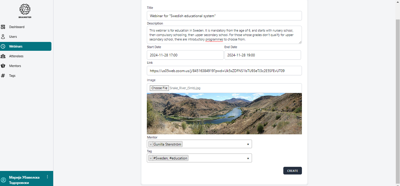3.Fill the Title field with special characters other than "-" and "." for example [Webinar for "Swedish educational system"]