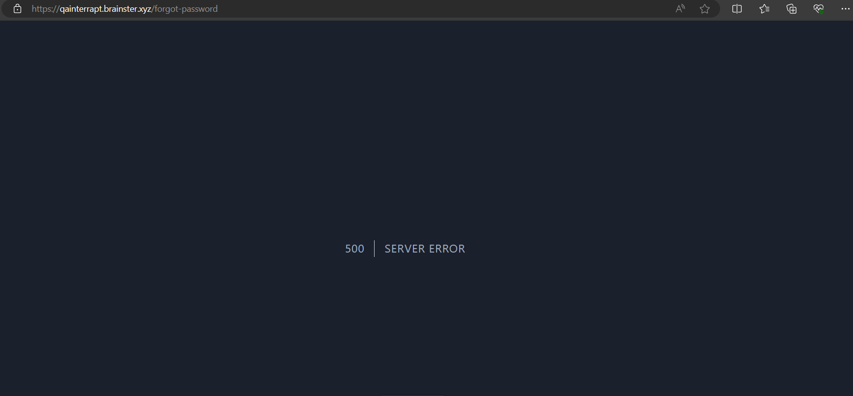 Page is displaying "500 Server Error" after entering valid email address and clicking on "Email Password Reset Link"