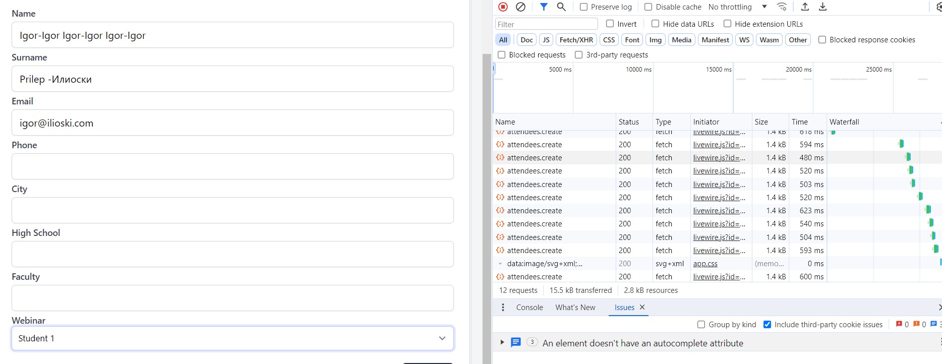 New attendee was successfully created