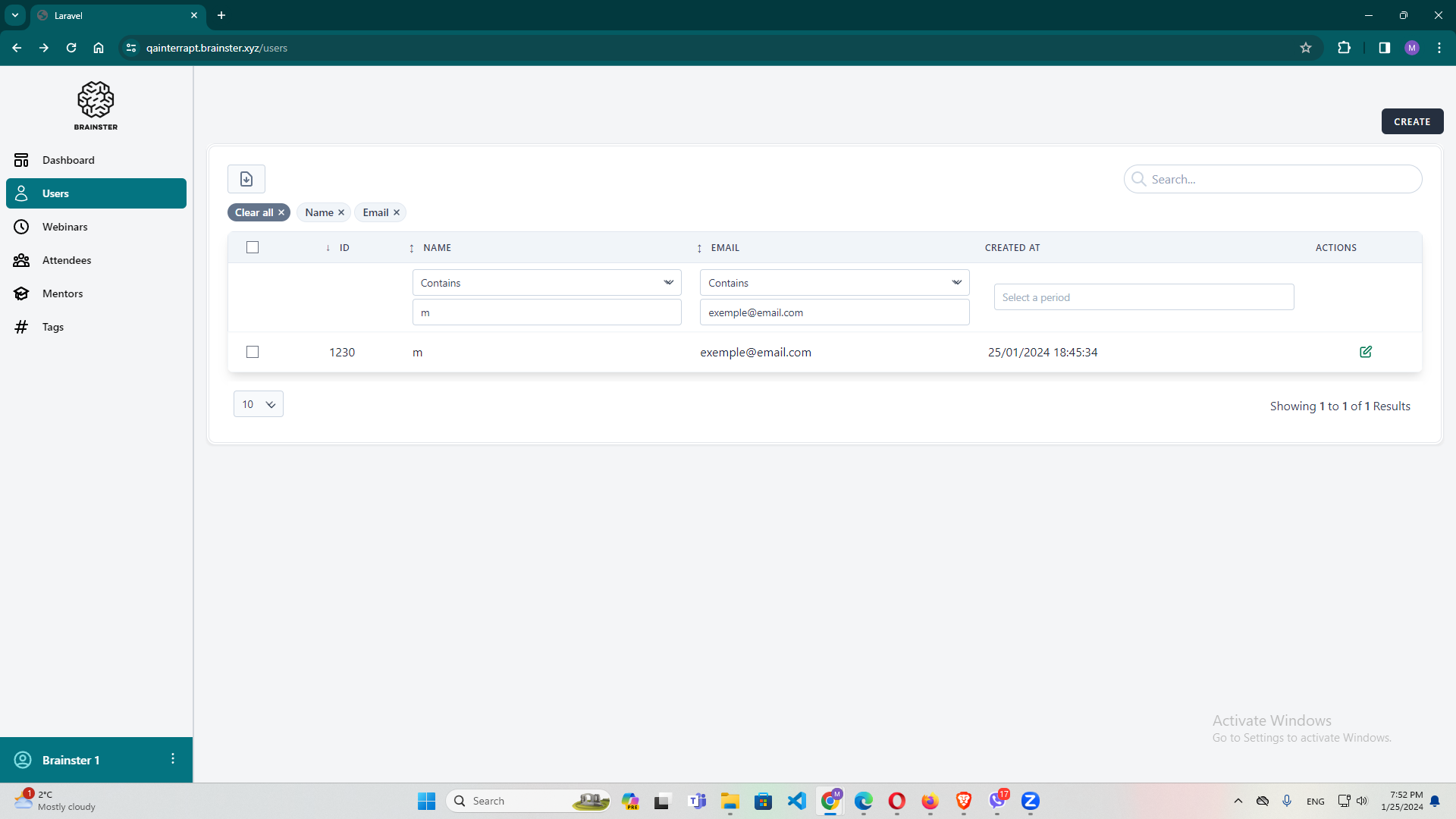 1.Navigate to https://qainterrapt.brainster.xyz/users