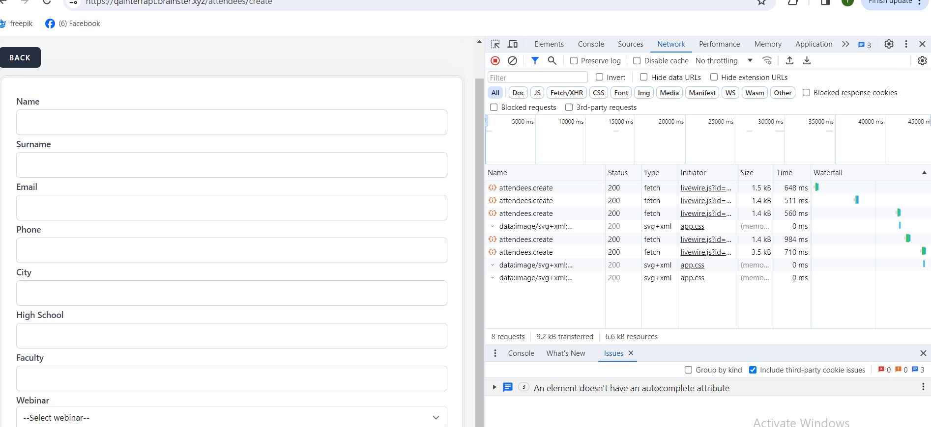1. User is navigated to URL for creating new Attendee