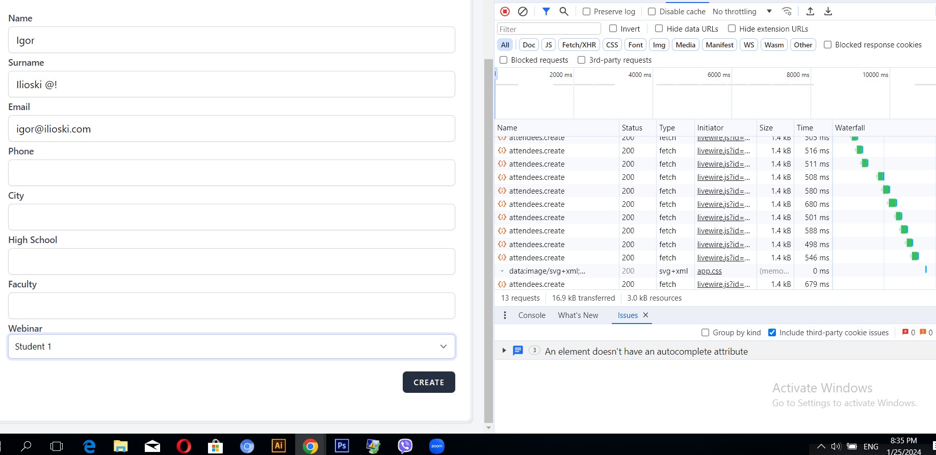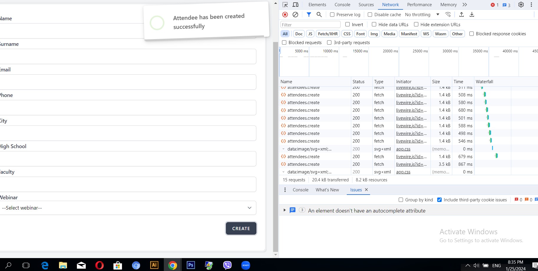 New attendee was successfully created