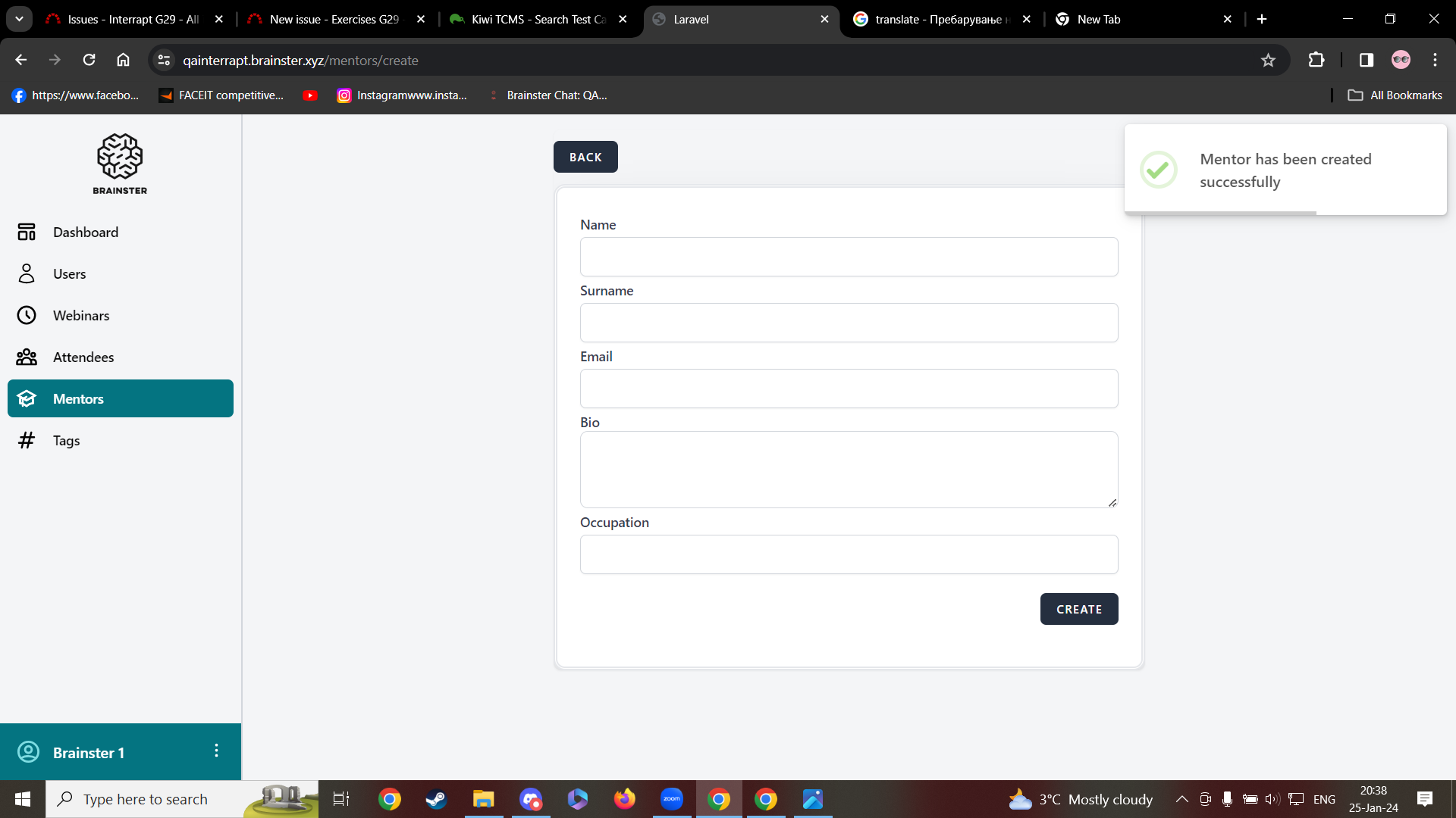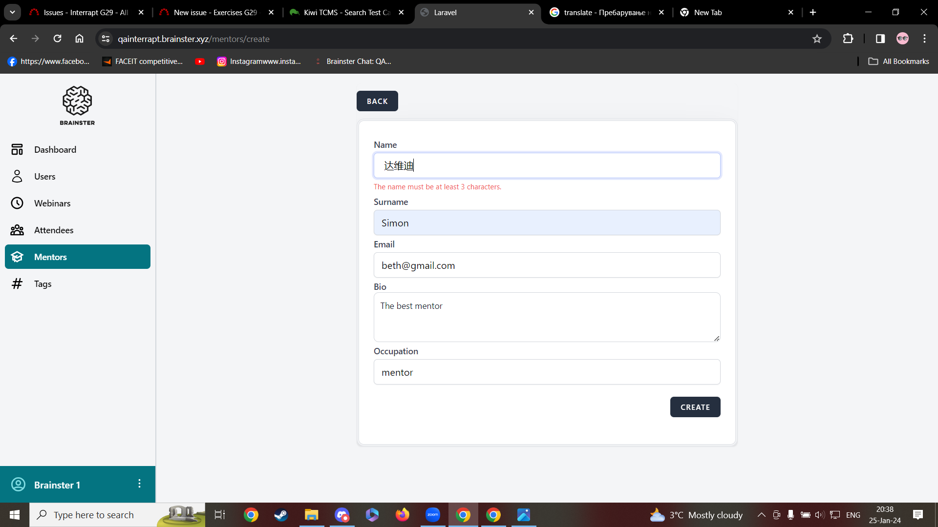 Error is shown and new mentor is not created