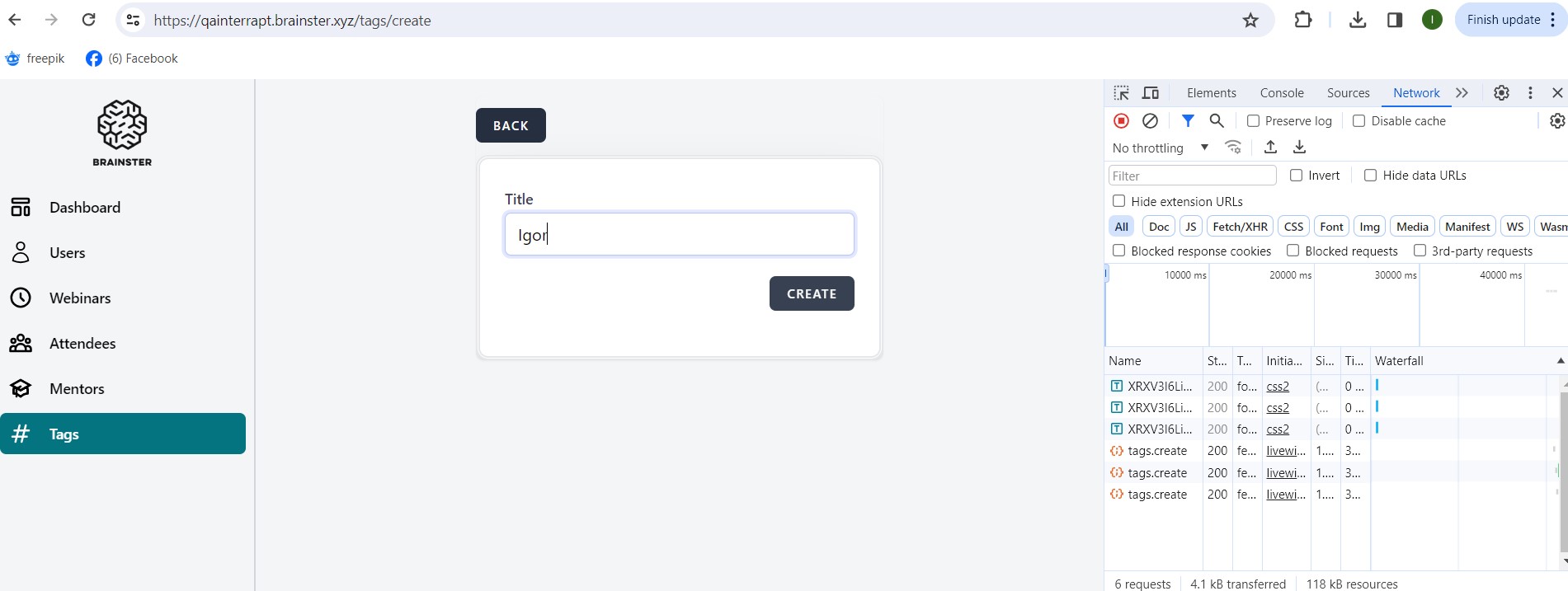 User is able to create a new Tag using less then minimum characters, where the minimum is 5 characters.