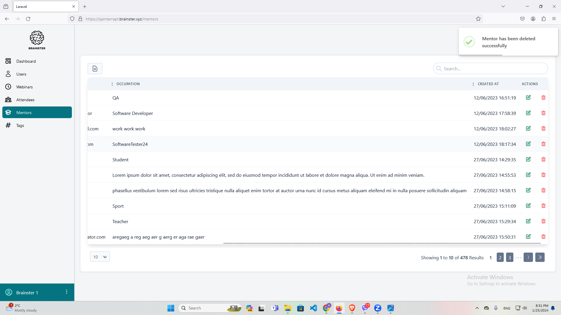 Mentor has been deleted successfully