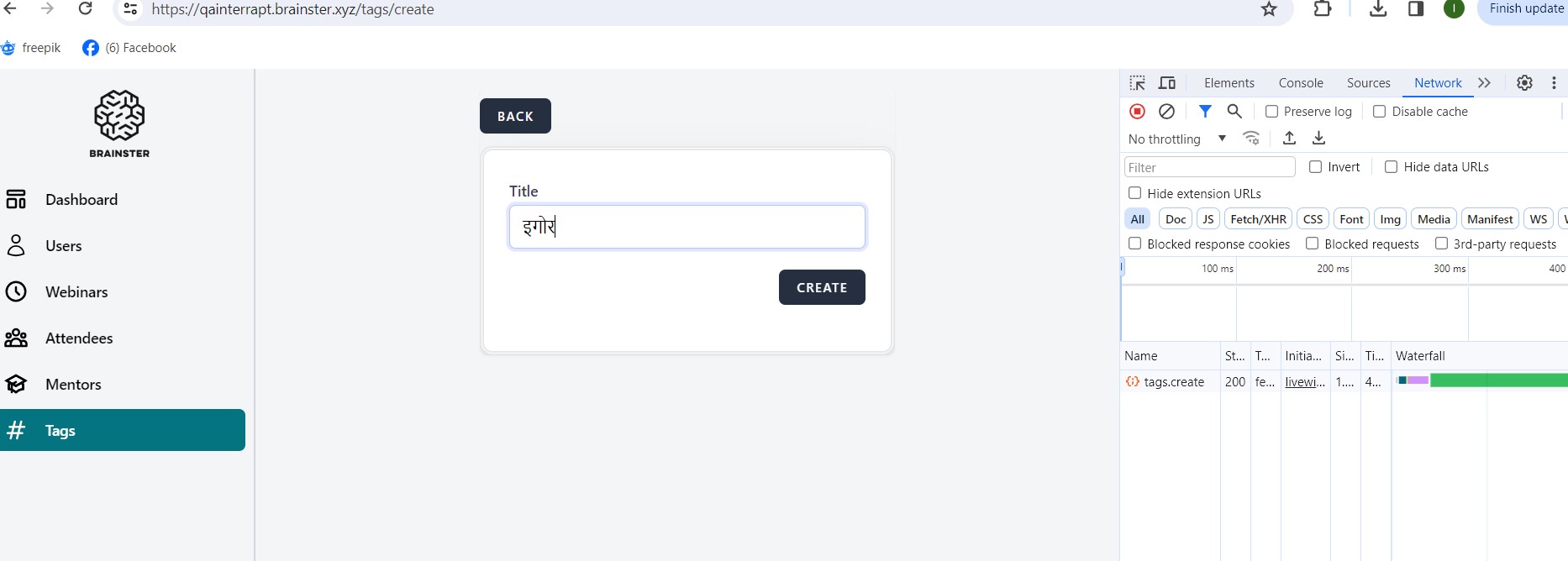 User is able to create a Tag with Hindu alphabet, although is not part of the specification, only Latin or Cyrilic.