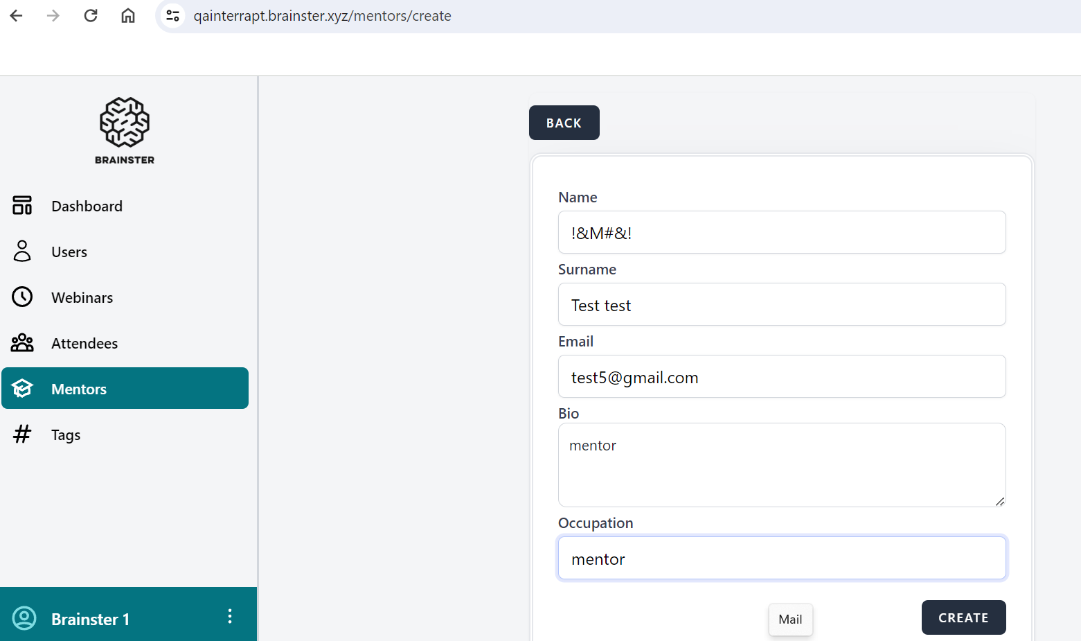 Name filed on Mentors create form accepts other special characters