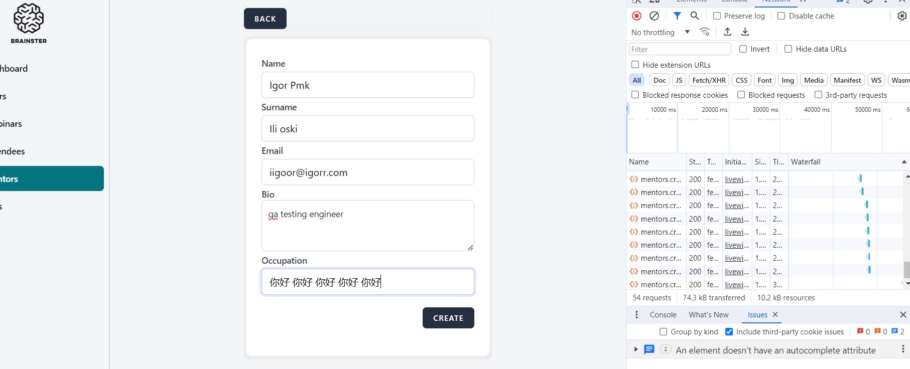 User is able to create a Mentor when in Occupation box is used Chinese alphabet that is not part of the requirement.