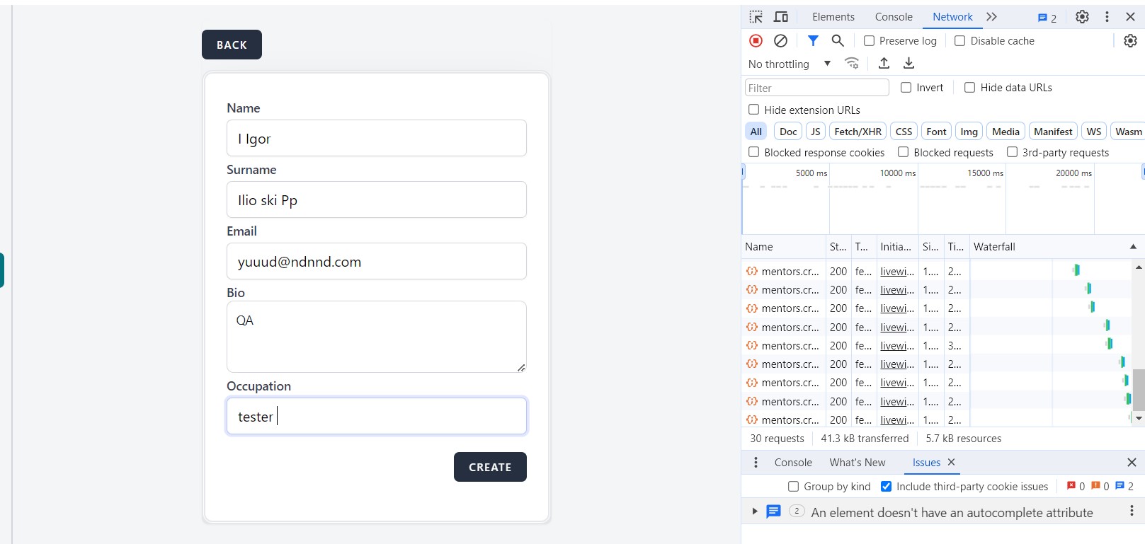 openUser is able to create a Mentor when Bio box is bellow minimum requirements