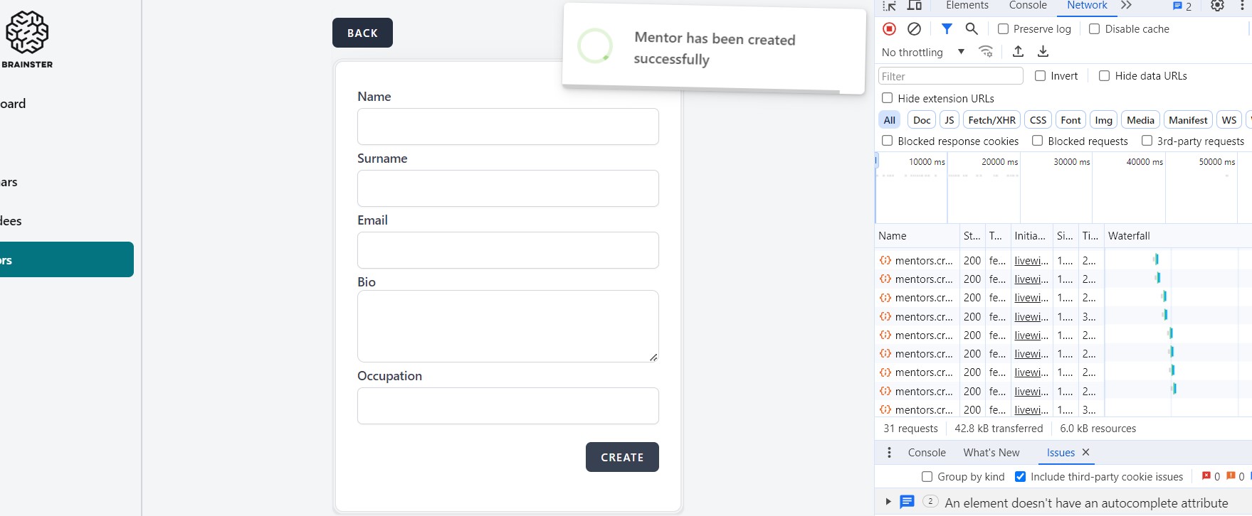 New Mentor was successfully created