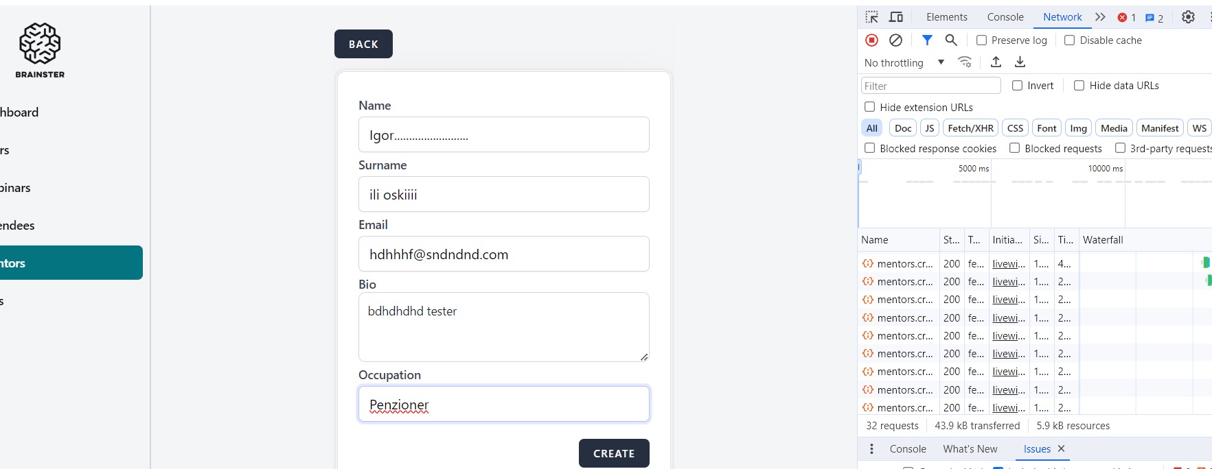 Error message should appear and Mentor should not be created