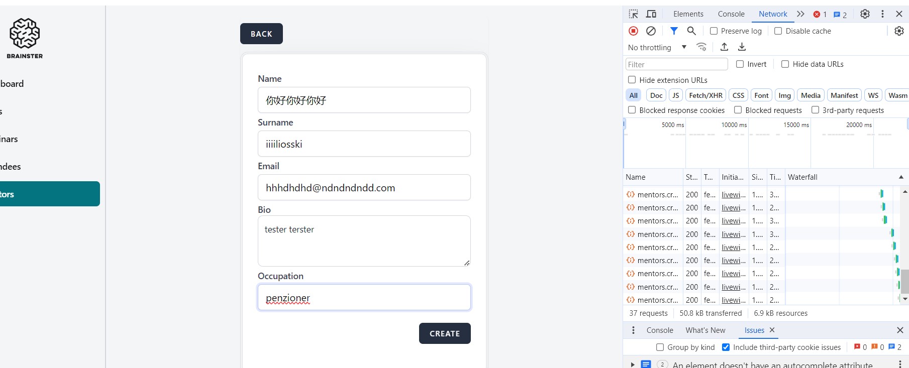 openUser is able to create a Mentor when Name box has alphabet that is not as per specification