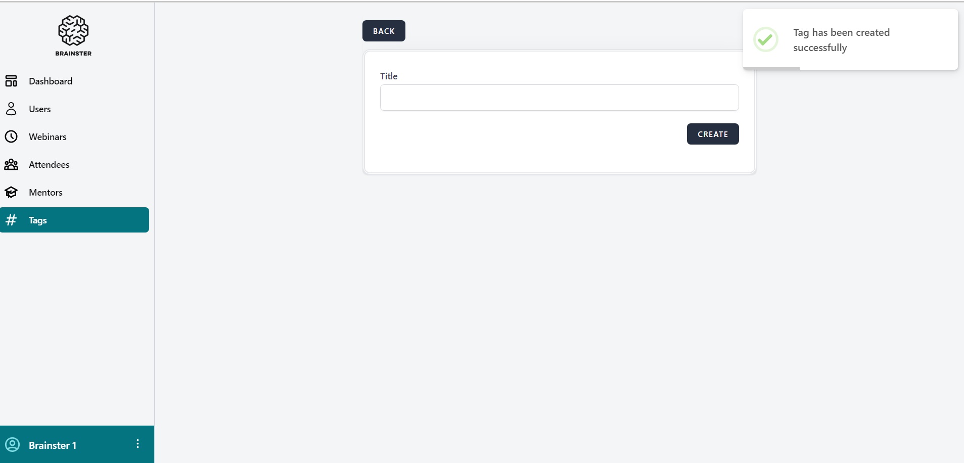 1.Navigate to https://qainterrapt.brainster.xyz/tags/create