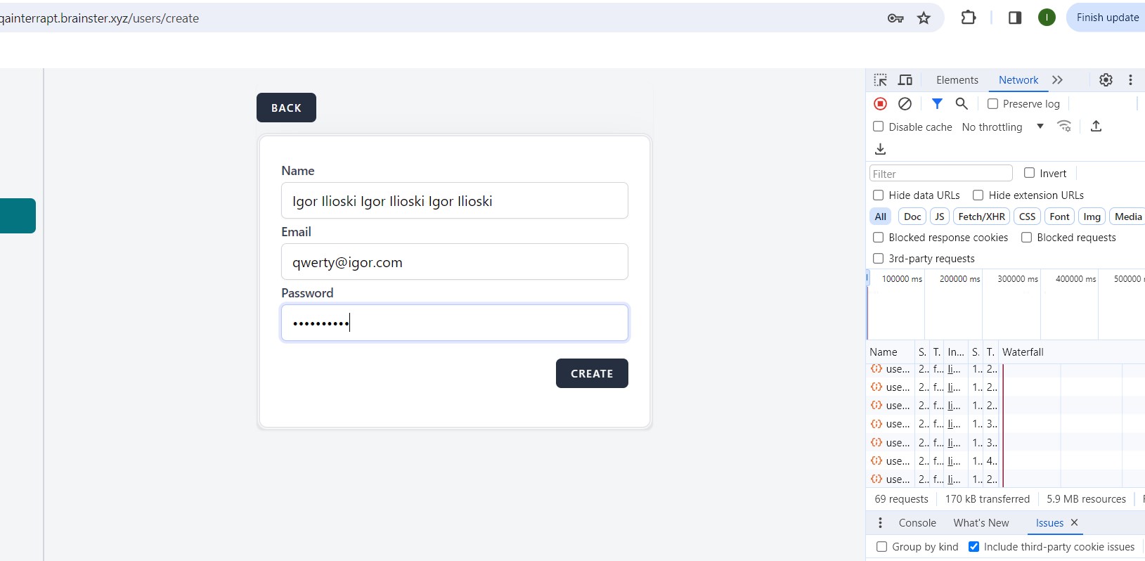 2. Enter in Name box text "Igor Ilioski Igor Ilioski Igor Ilioski"