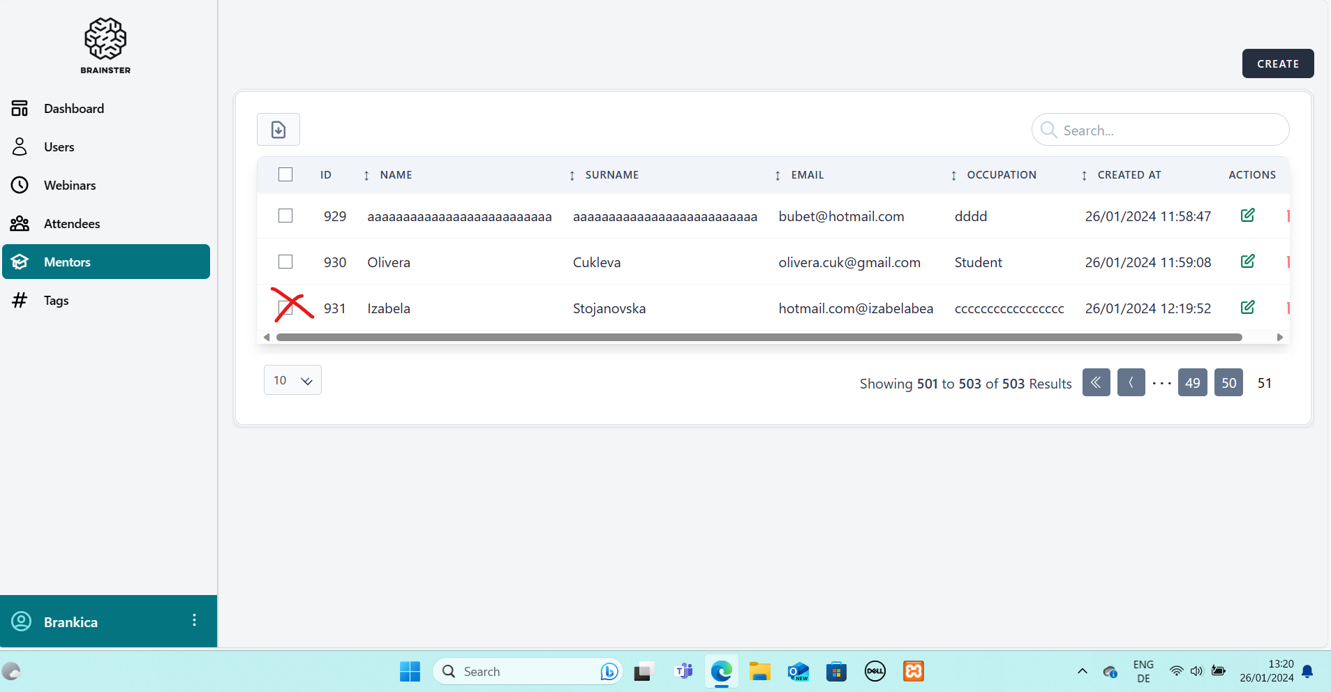 1. User is navigated to https://qainterrapt.brainster.xyz/mentors/create