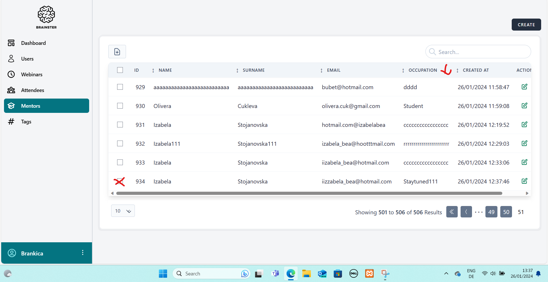 openUser is able to create a Mentor by entering numbers in Occupation input field