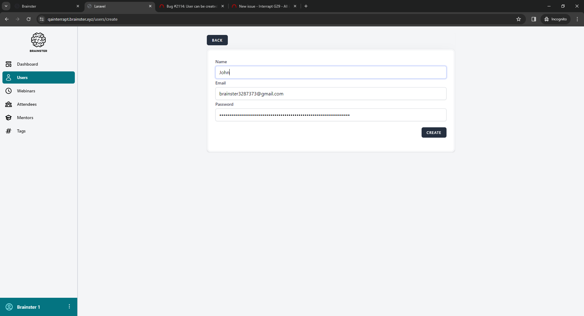 You need to be logged in to https://qainterrapt.brainster.xyz with valid e-mail and password