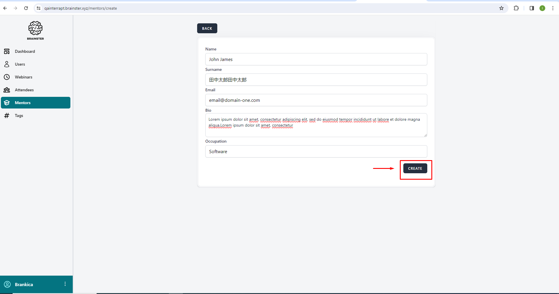 A user can successfully create a Mentor using non-Latin and non-Cyrillic letters in the surname input field