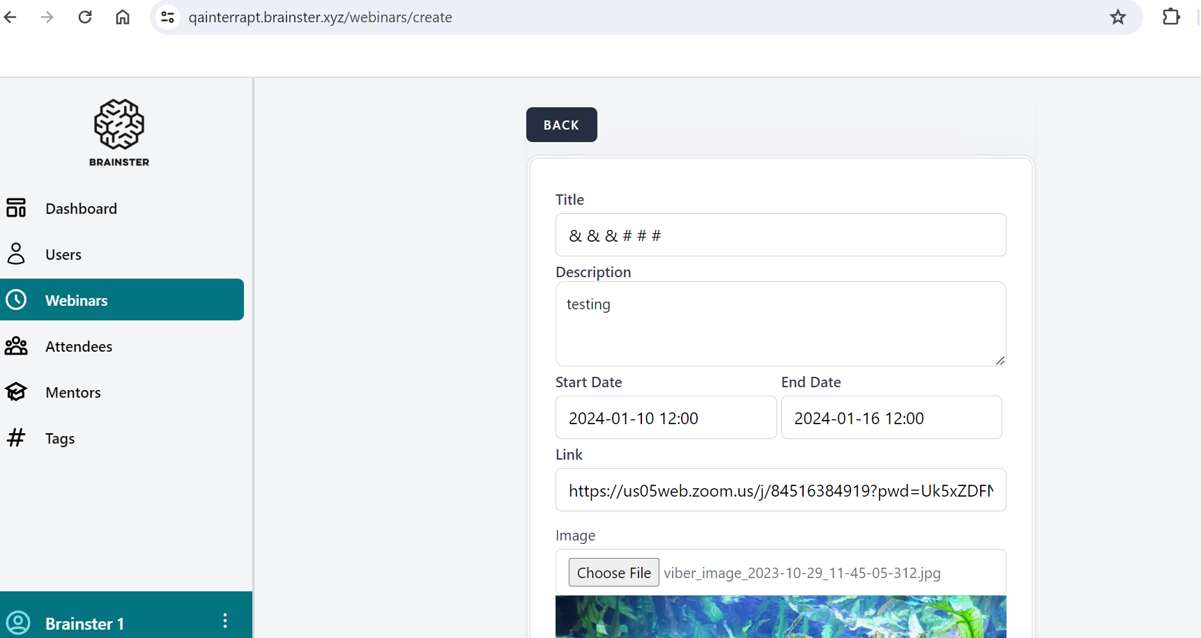 The user is already log in on https://qainterrapt.brainster.xyz/login