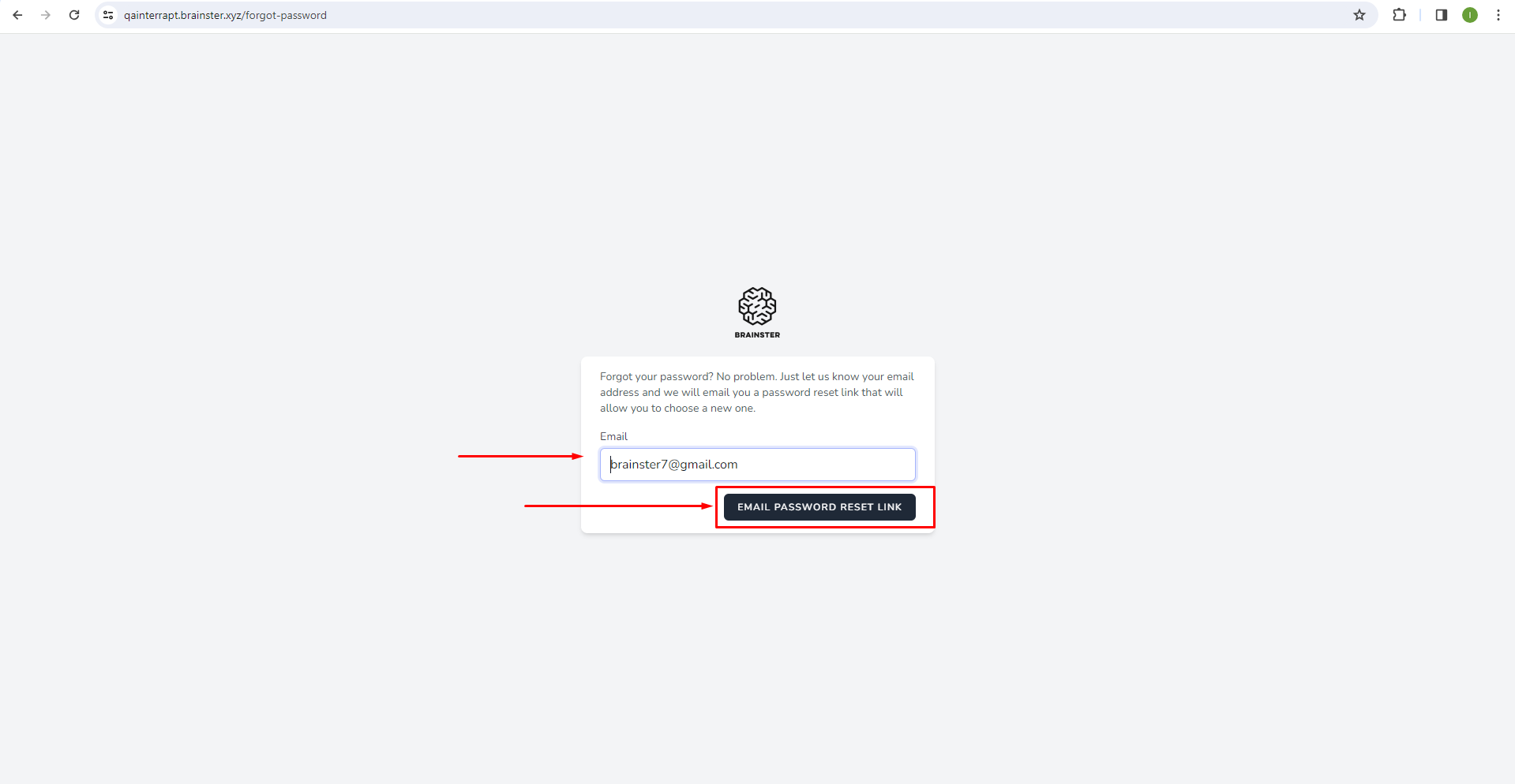 4. Click on 'EMAIL PASSWORD RESET LINK'