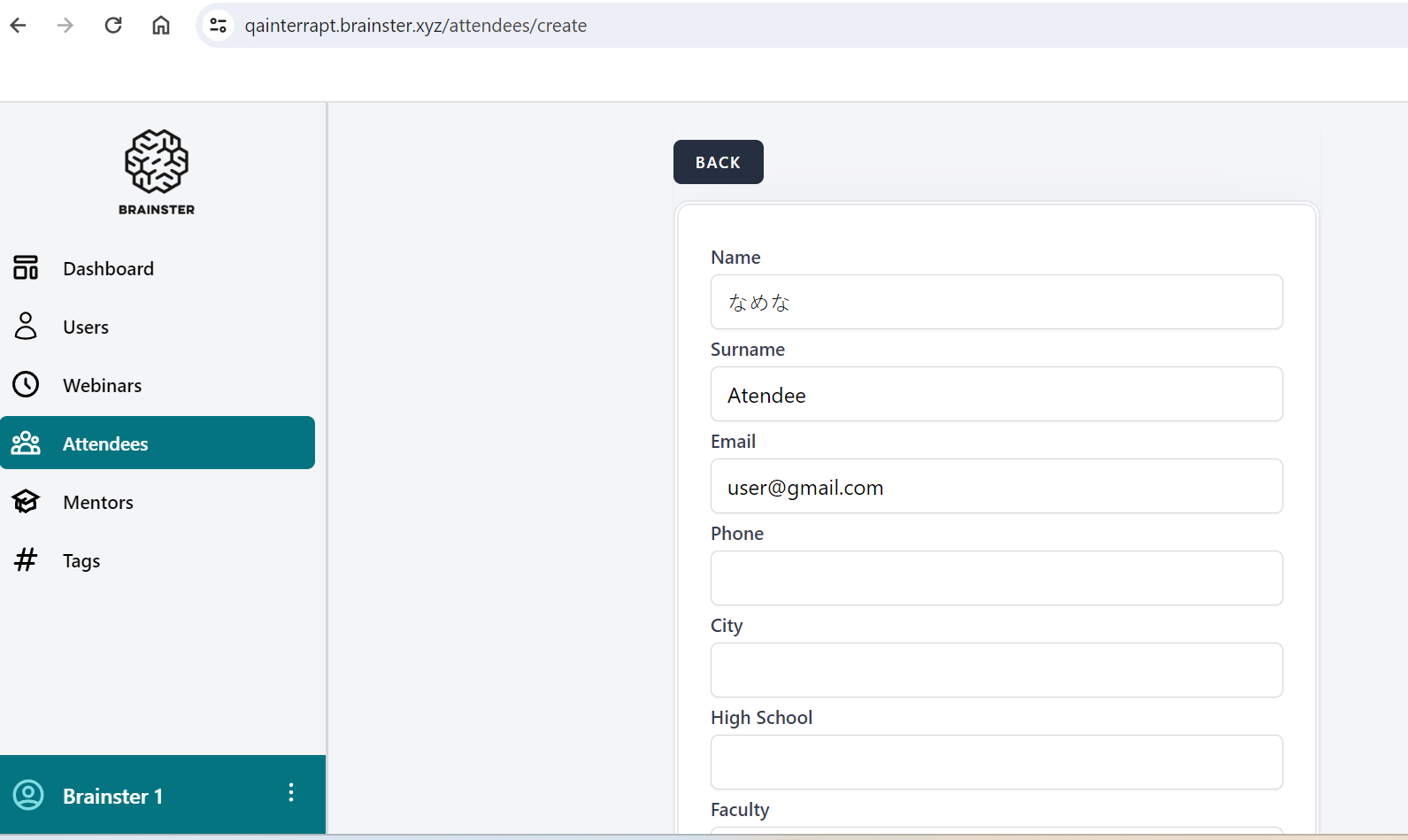 the user is already on the page https://qainterrapt.brainster.xyz/login