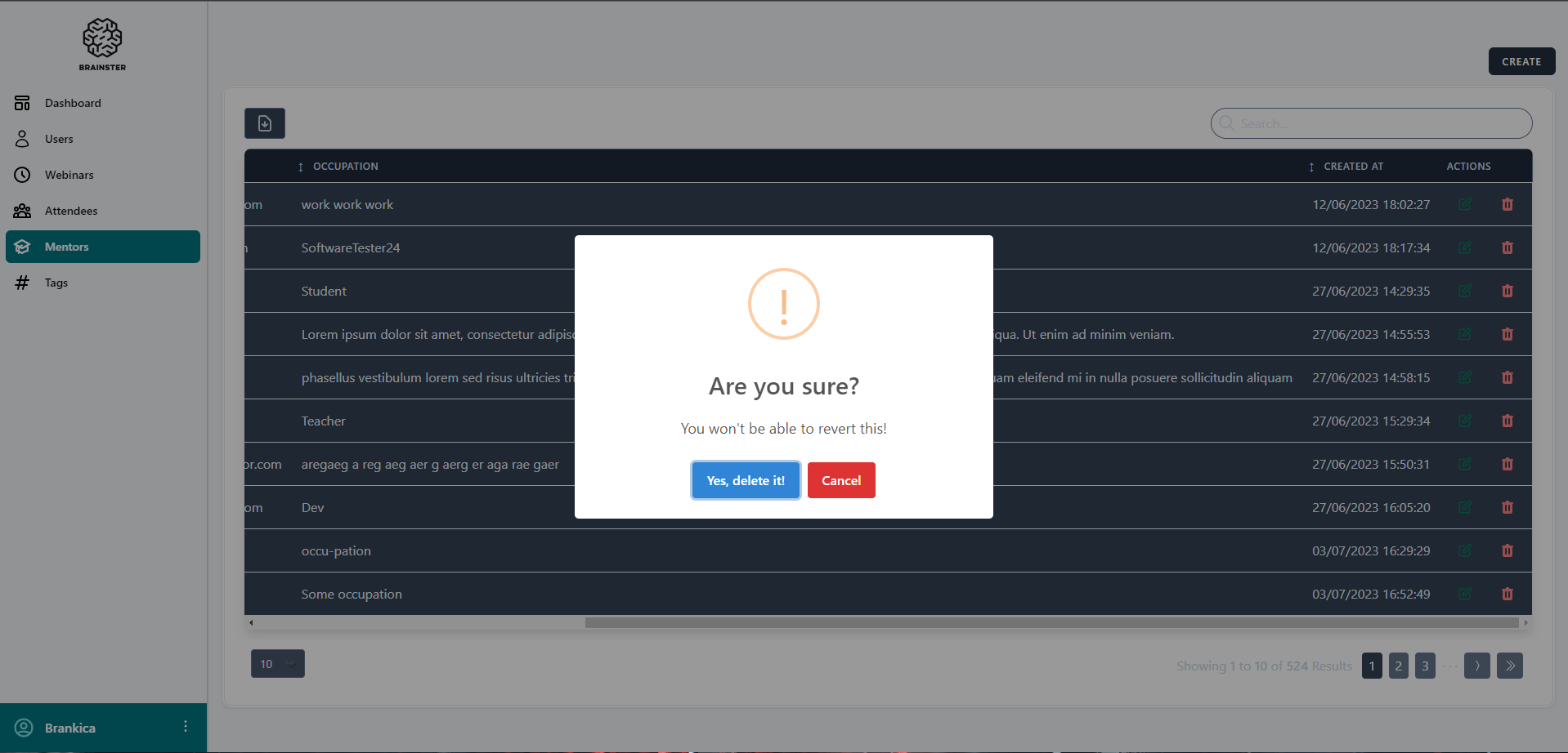 2. Click on the red trash button to delete mentor