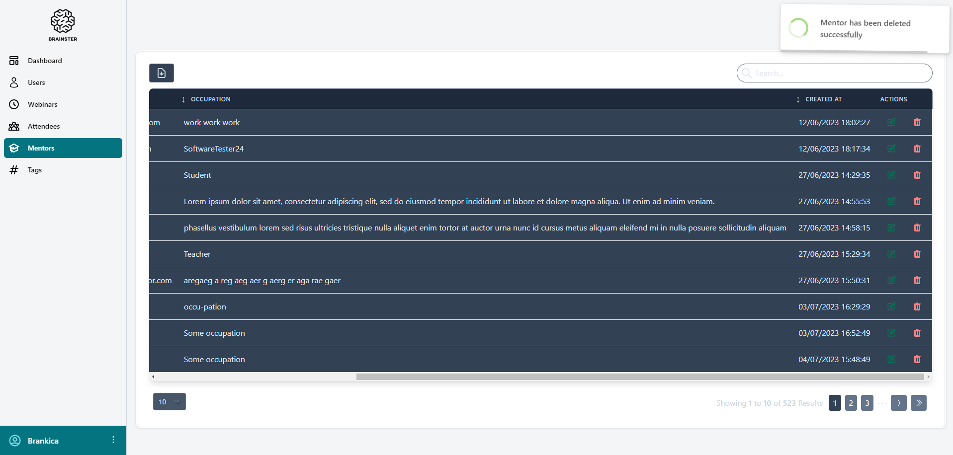 Mentor is successfully deleted