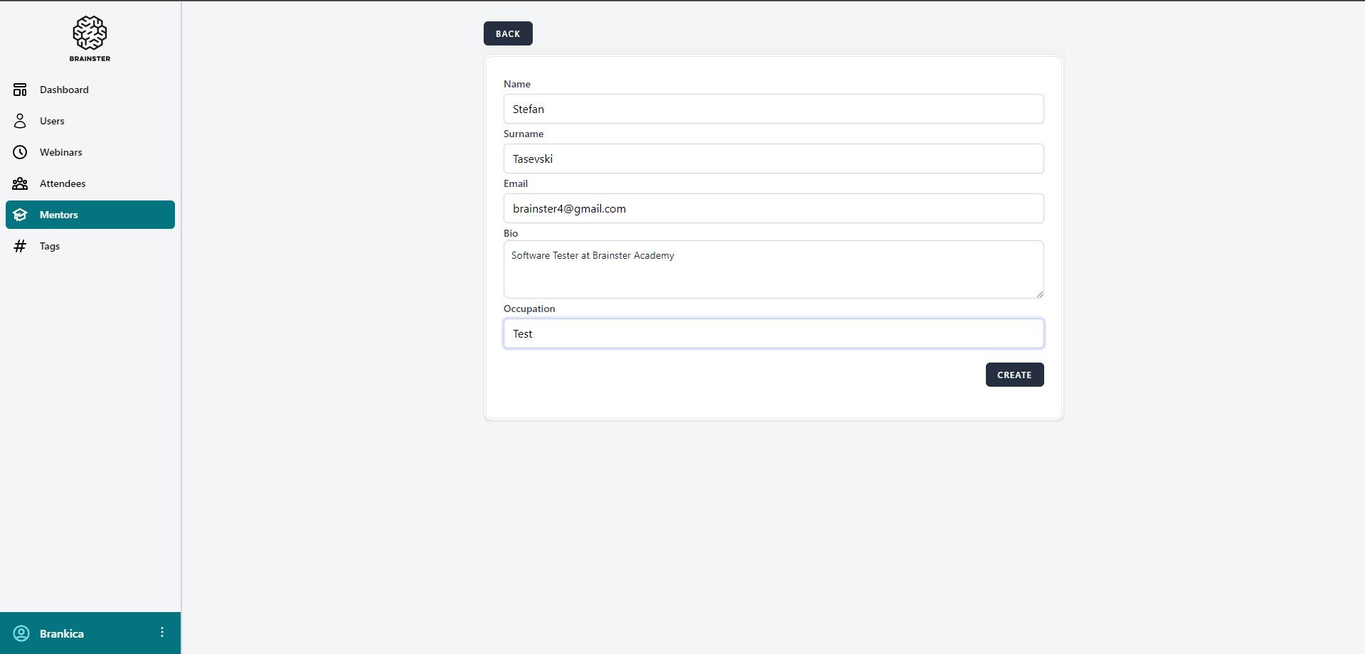 User can create mentor with less characters than minimum requirement in the Occupation field