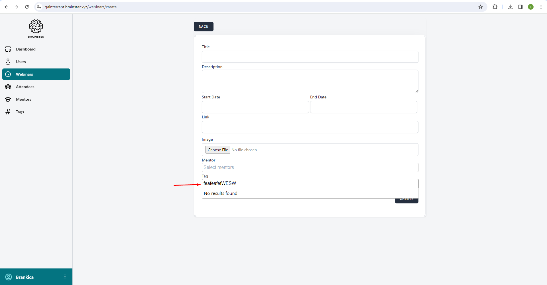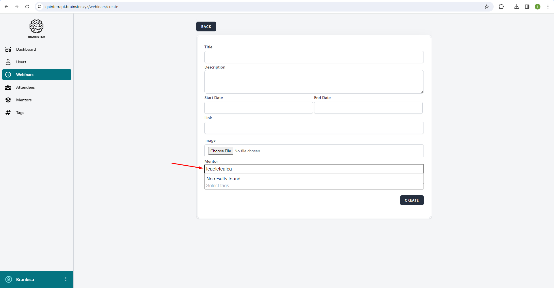 The user is able to type in the Mentors and Tags drop-down fields on the form for creating Webinars, although it should not be possible according to the specifications