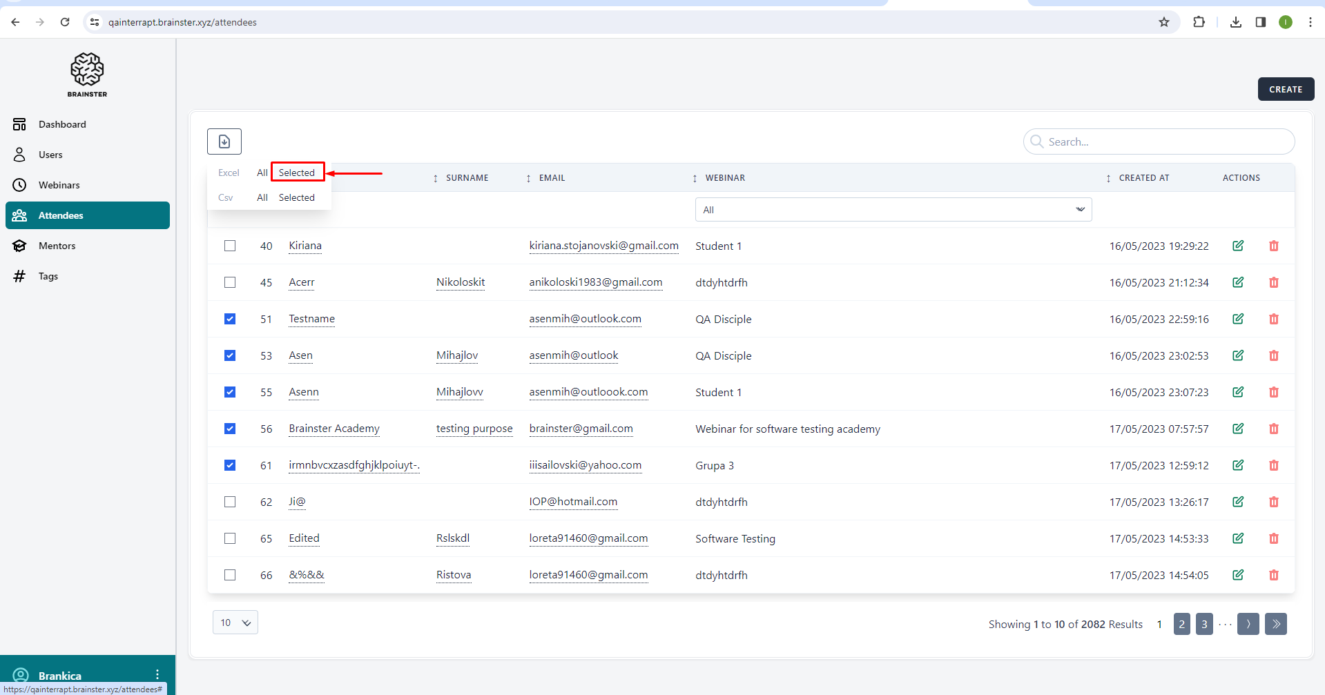The functionality of the Export button for 'Selected' Attendees fails to download the previously checked Attendees in Excel format
