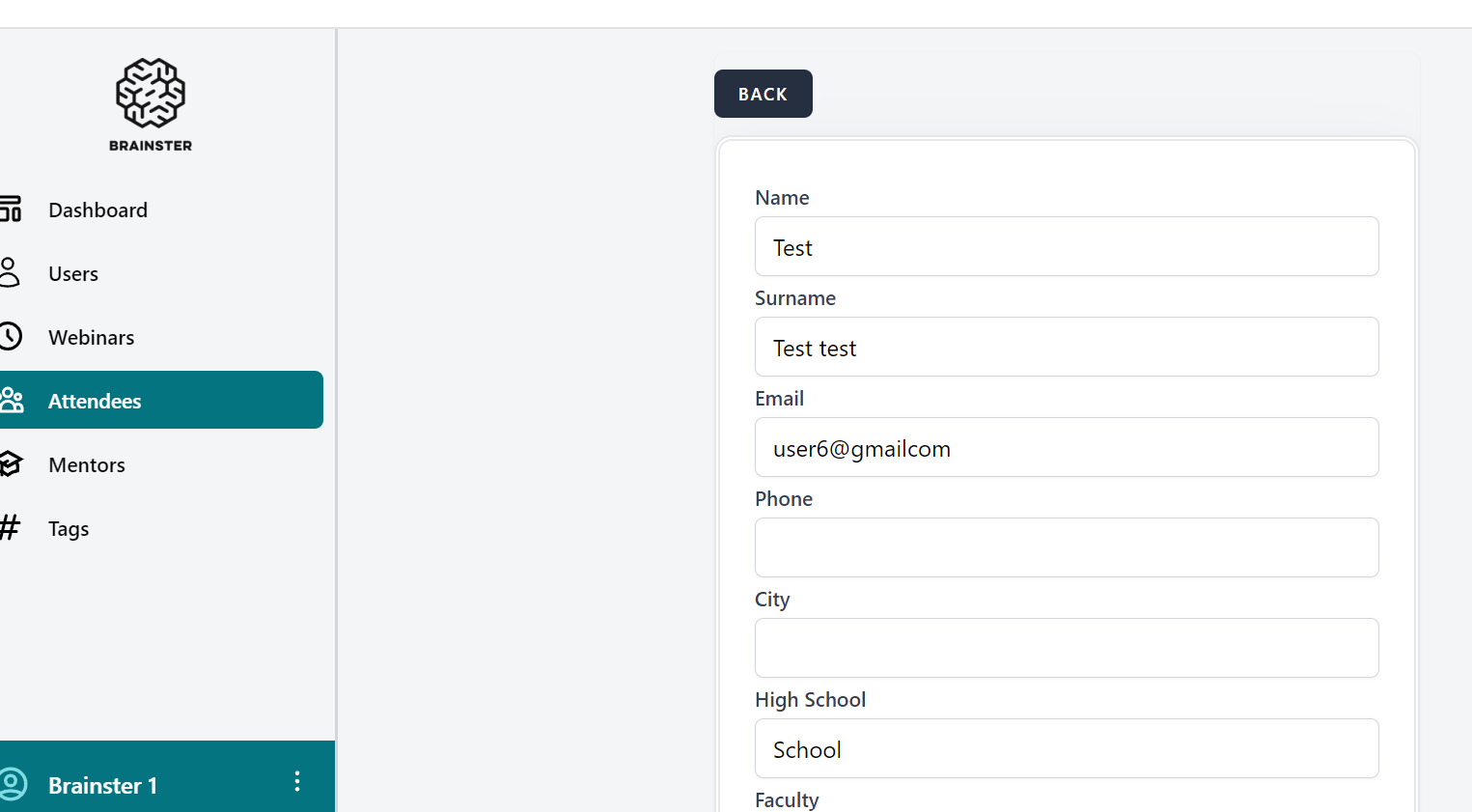 The user is already log in on https://qainterrapt.brainster.xyz/login