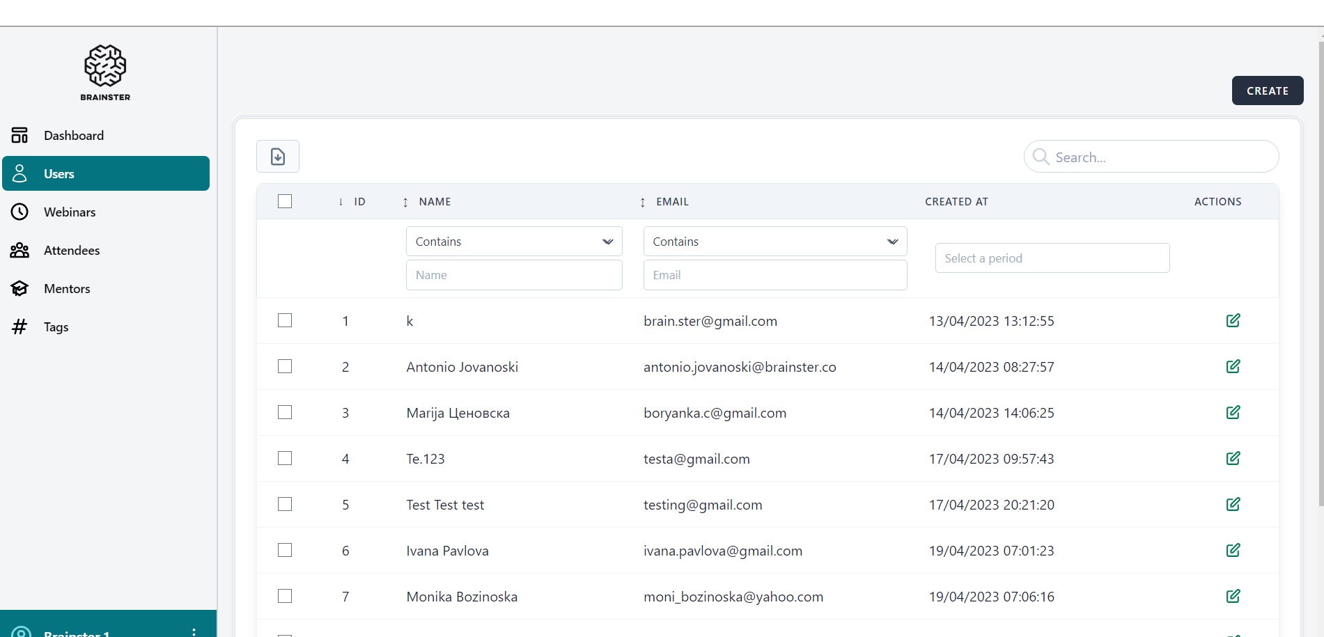 1.Navigate to https://qainterrapt.brainster.xyz/users