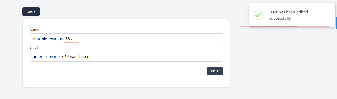 • The entered text with the invalid character should NOT be displayed in the Name field