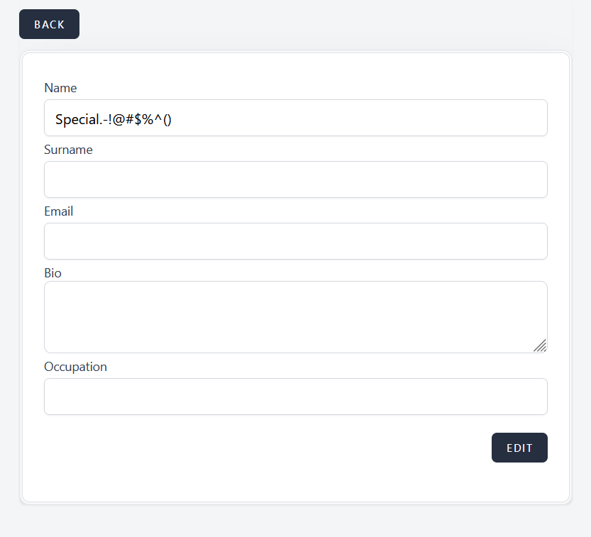 1.Fill the "Name" field with the following text: "Special.-@#$%^()"