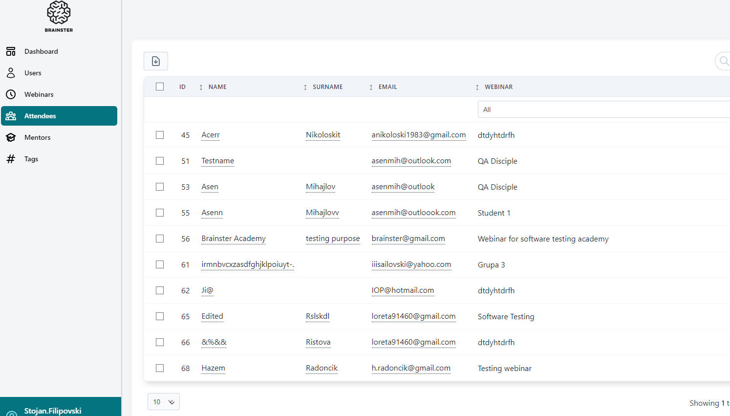 The drop-down button on "Attendees" page is in form of a number and two down arrows instead of one