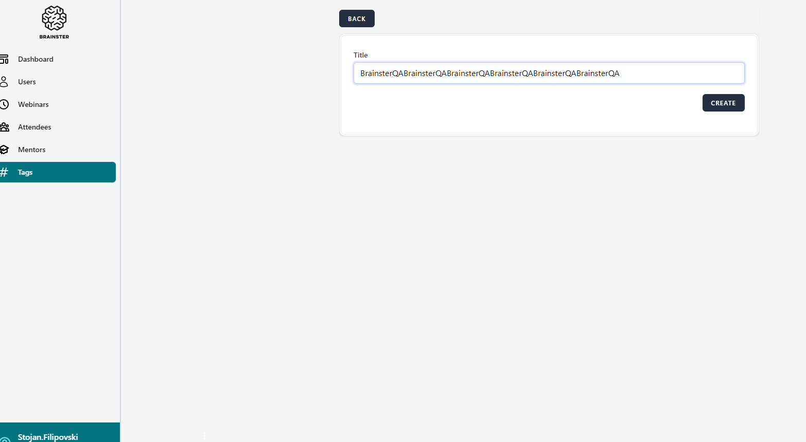 The system allows to create a "Tag" title with more than 20 characters against acceptance criteria (max. 20 characters)