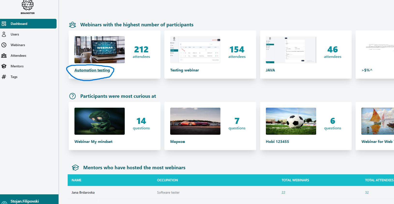 User is navigated to "Webinars" page instead of "Dashboard" page