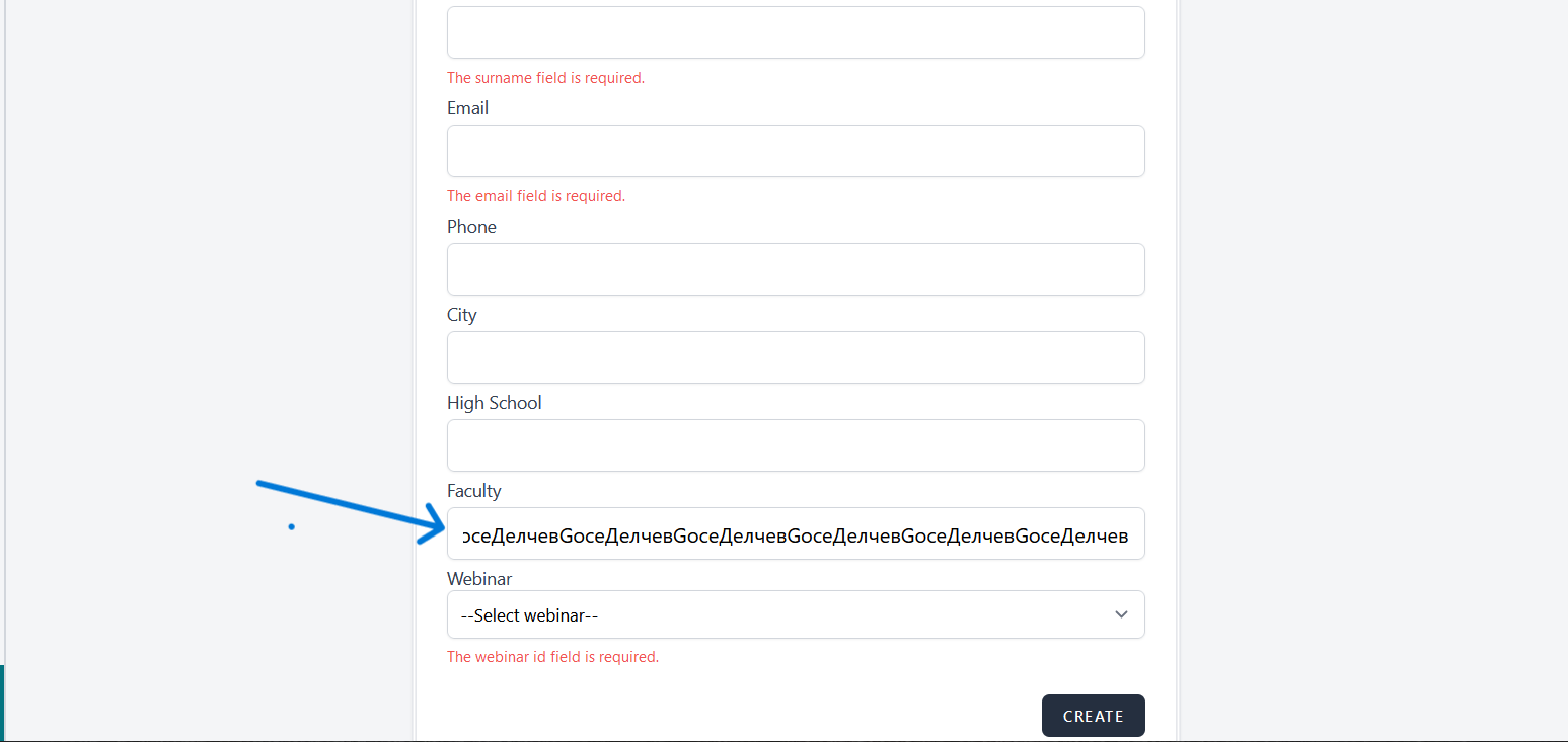 Actual Results faculty field accepts characters input above maximum length and do not display error massage